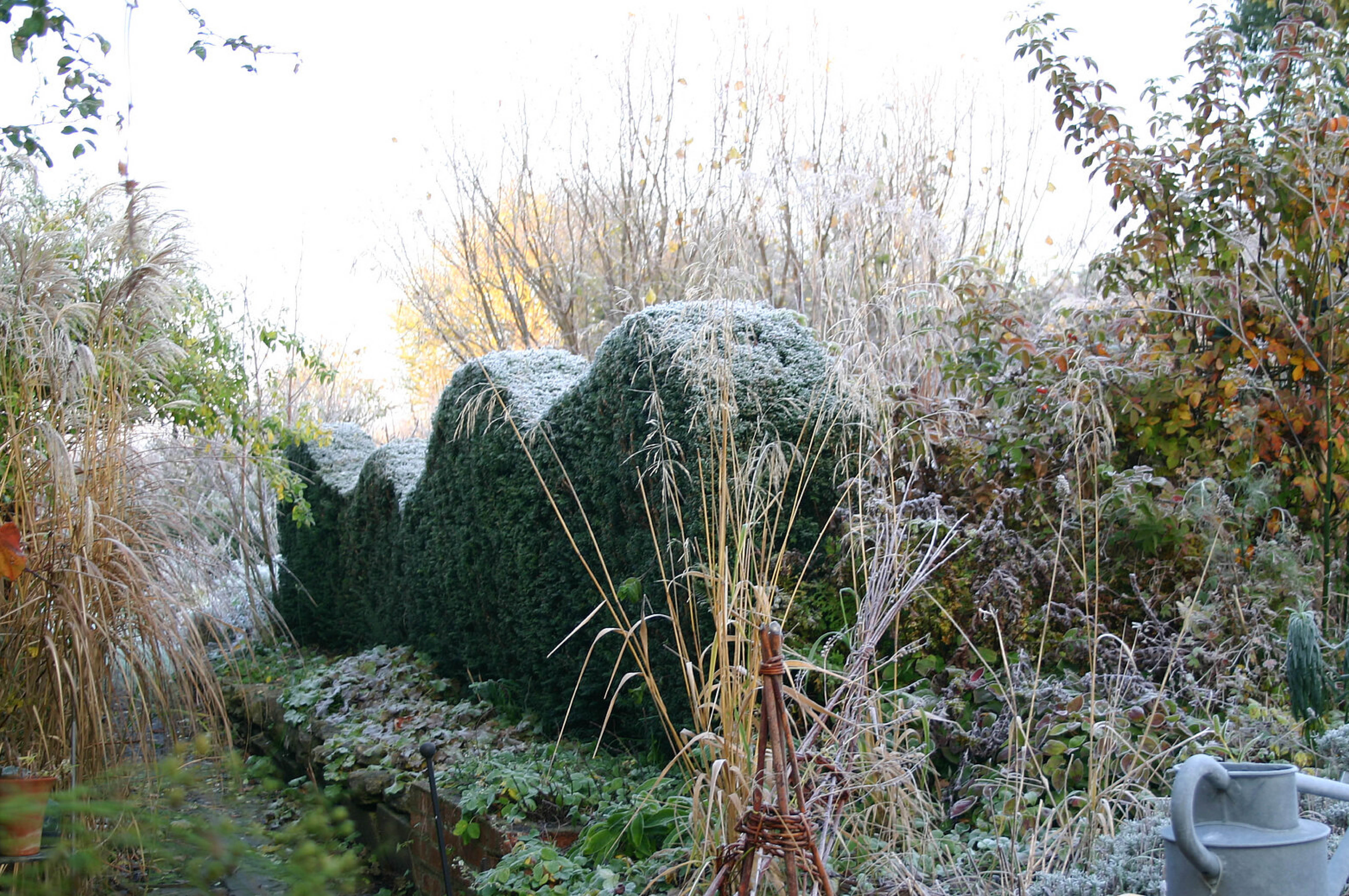 Manche Pflanzen lassen sich besser in Form bringen als andere, aber insgesamt ist es erstaunlich, wie viele Pflanzen sich in Form bringen lassen. Eibe, Buchsbaum, Buche und Hainbuche sind uns allen bekannt, aber auch Berberis, Enkiantus perulatus, immergrüne Eiche, Liquidambar stiraciflua (Amberbaum), Zieräpfel und -birnen, Cornus mas (Kornelkirsche) sind nur einige der vielen Pflanzen, die beschnitten und in Form gebracht werden können, um Struktur und Ordnung in Ihren Garten zu bringen.
