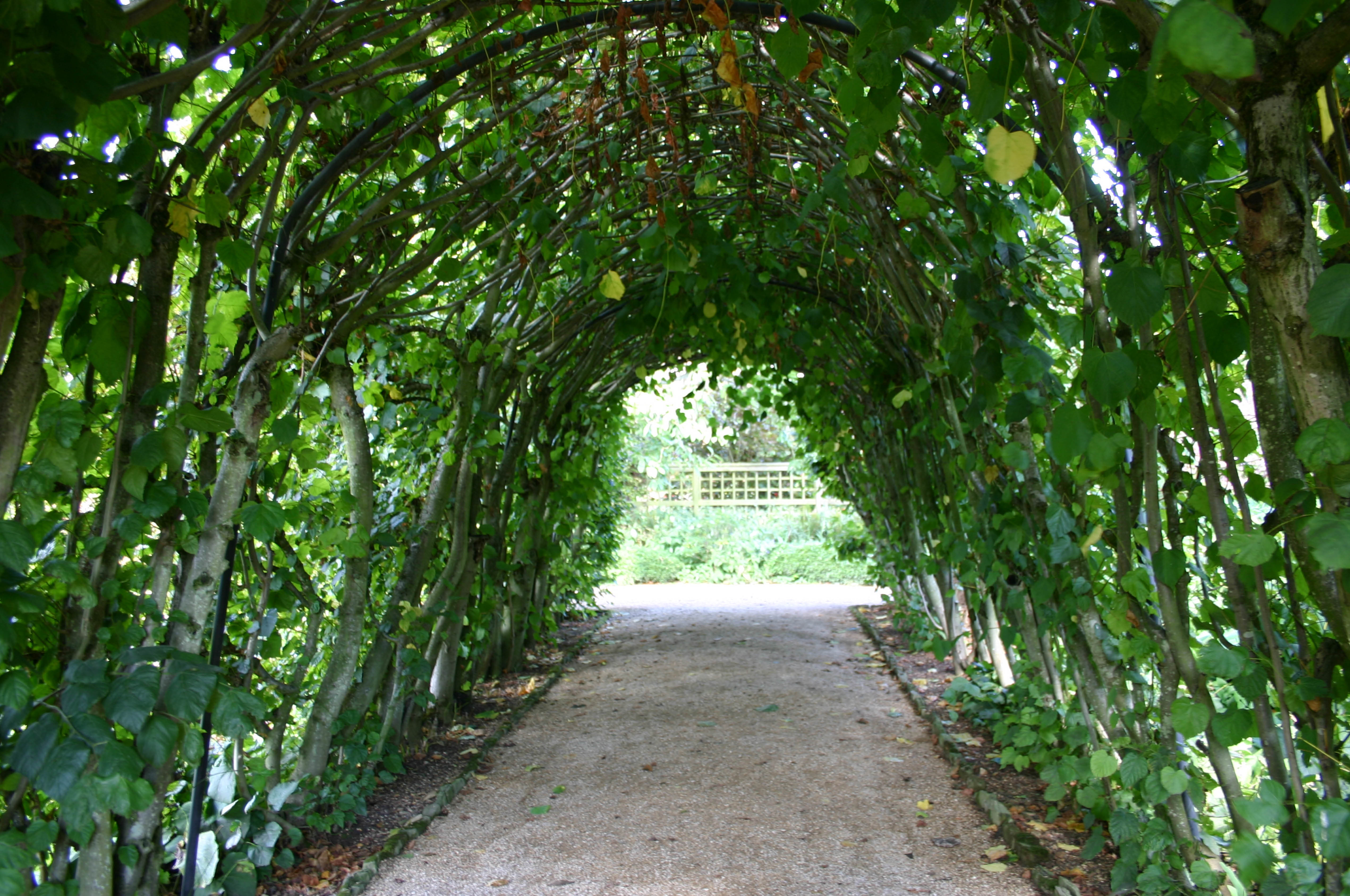 Bögen und Tunneln, die mit Kletterpflanzen wie einer Glyzinie bedeckt sind, bieten einen kühlen, dunklen Unterschlupf, oder gut beschnittene Spalierobstbäume wie Äpfel oder Birnen schaffen einen leicht schattigen Platz.