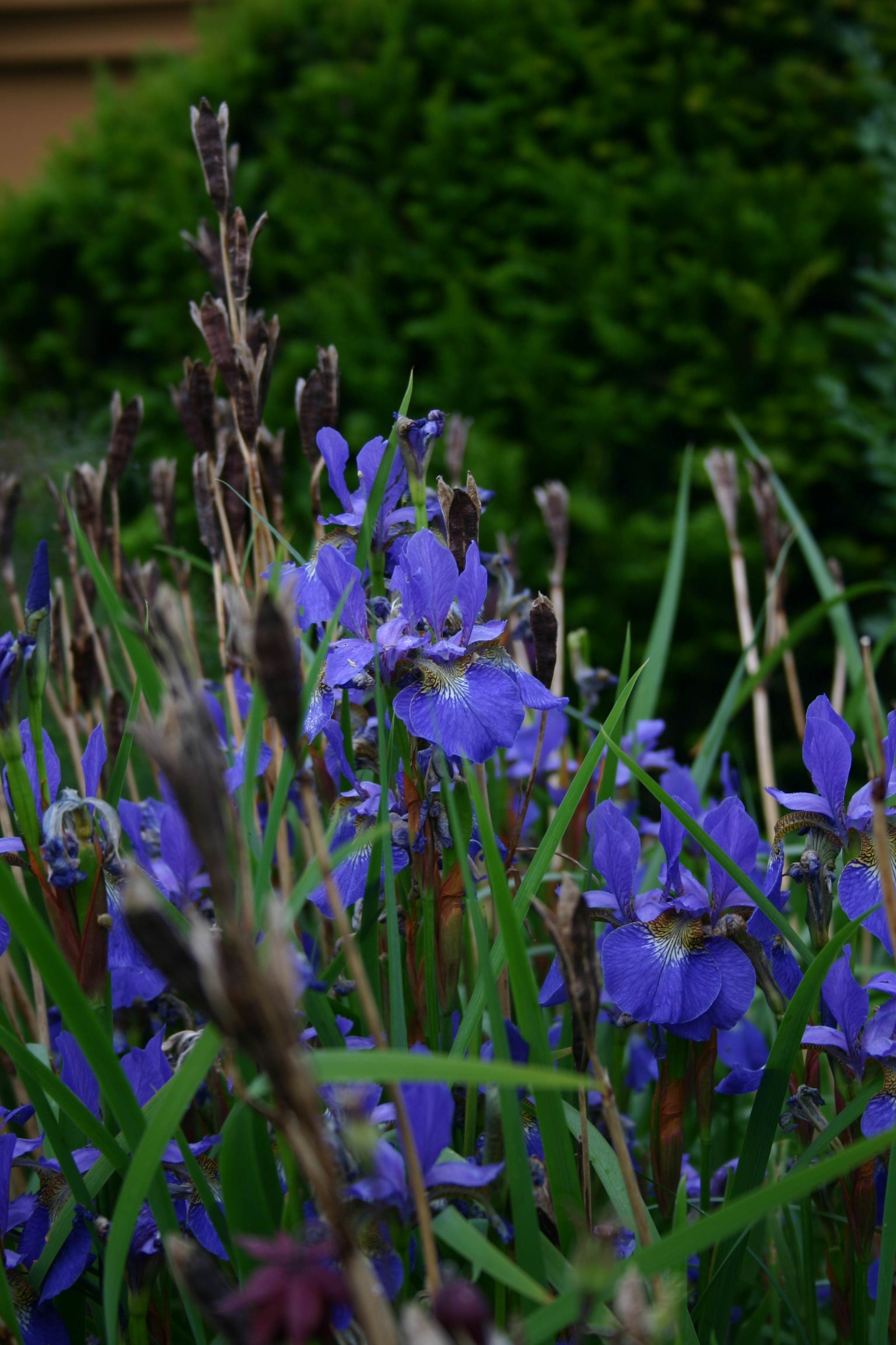 Ich wusste nicht, dass diese mühsame Arbeit so viel einfacher und leichter sein würde, wenn sie im Winter erledigt würde, wenn die Pflanzen von selbst umfallen. Erst als ich meinen eigenen Garten hatte, begann ich zu experimentieren und ließ alles stehen. Ich wollte sehen, was passiert. Manche Pflanzen bringen wenig Freude. Meine Taglilien zum Beispiel hinterließen nur blasse, bräunliche Stängel, ohne Samenschoten. Auch die meisten Bart-Iris hinterließen nur lästige Stängel ohne Schoten und trugen nichts zur Beetgestaltung bei. Iris sibirica (Wiesen-Schwertlilie) hingegen überraschte mich mit schönen Samenkapseln, die wunderbar trocknen und den ganzen Winter über dekorativ bleiben. Dasselbe gilt für die schattenliebende Iris foetidissima (Stinkende Iris), die plötzlich leuchtend rote Samen zum Vorschein bringt, wenn sie ihre Samenkapseln öffnet.