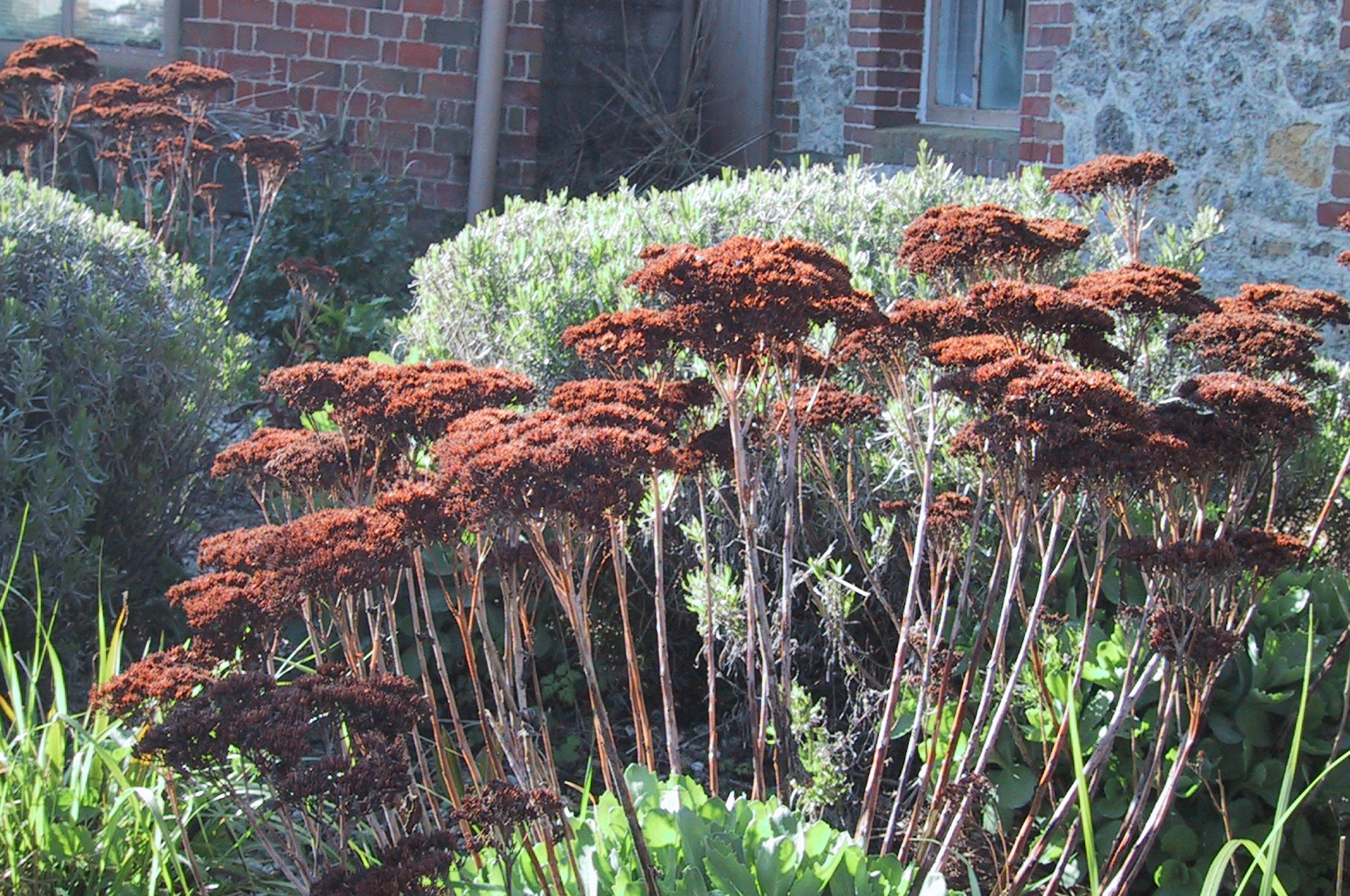 Dahlien und andere einjährige Pflanzen wie Nicotiana und Cosmos sind bereits verblüht, und die letzten Rosen sehen durchnässt und zerzaust aus. Inmitten der verrottenden Stauden stehen die Helden des Winters stolz. Jetzt werde ich dafür belohnt, dass ich nach dem Verblühen der Blumen geduldig war. Ich habe meine Jugend damit verbracht, alle Blumen am Ende ihrer Blüte treu zu entfernen, weil mir gesagt wurde, dass man das tun muss". Jetzt weiß ich, wie viel ich in den Wintermonaten verpasst habe. Sobald Phlox, Monarda, Lupine oder Rittersporn verblüht waren, wurden die Blütenköpfe abgeschnitten und die Stängel nur mit ihren grünen Blättern stehen gelassen. Im Herbst wurden diese zurückgeschnitten und fleißig zerkleinert, bis meine Hände nicht mehr konnten, bevor sie auf den Kompost kamen.