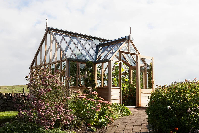 Hergestellt im Vereinigten Königreich, vereinen diese Gewächshäuser höchste Handwerkskunst mit nachhaltigen Materialien. Das kanadische Zedernholz, bekannt für seine Langlebigkeit und Widerstandsfähigkeit, sorgt dafür, dass Ihr Gewächshaus den Elementen trotzt und gleichzeitig eine warme, einladende Atmosphäre für Ihre Pflanzen schafft. Die natürliche Schönheit des Holzes verleiht Ihrem Garten einen Hauch von Eleganz und Stil.