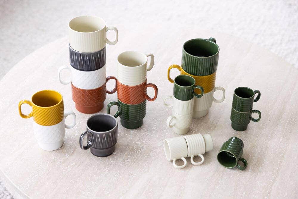 Kaffeebecher im 2er-Pack von Sagaform. Diese Kaffeetasse mit ihrem charakteristischen Reliefmuster ist Teil der Coffee & More-Serie, die Sagaform in Zusammenarbeit mit der Designerin Margot Barolo entworfen hat. Das Design der Serie ist ein Flirt mit der direkten, verspielten, geradlinigen Sprache der 1970er Jahre. Die Serie besteht aus verschiedenen Stücken, Mustern und Farben und sieht mit einer wunderbaren Mischung aus allem am besten aus. Mikrowellen- und spülmaschinengeeignet.